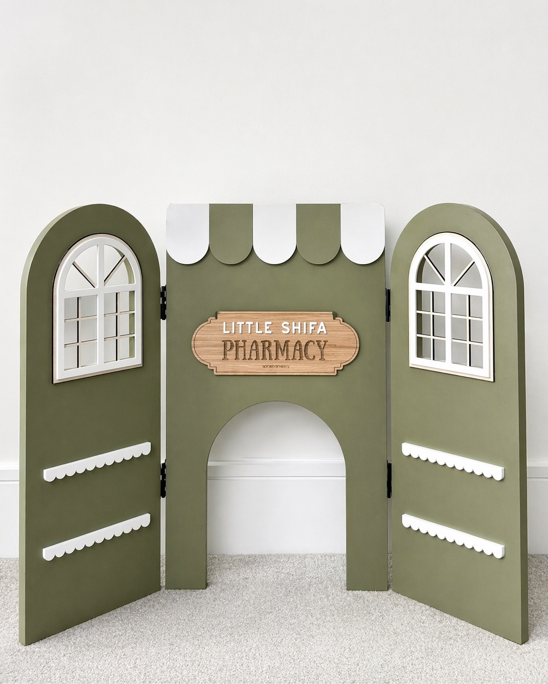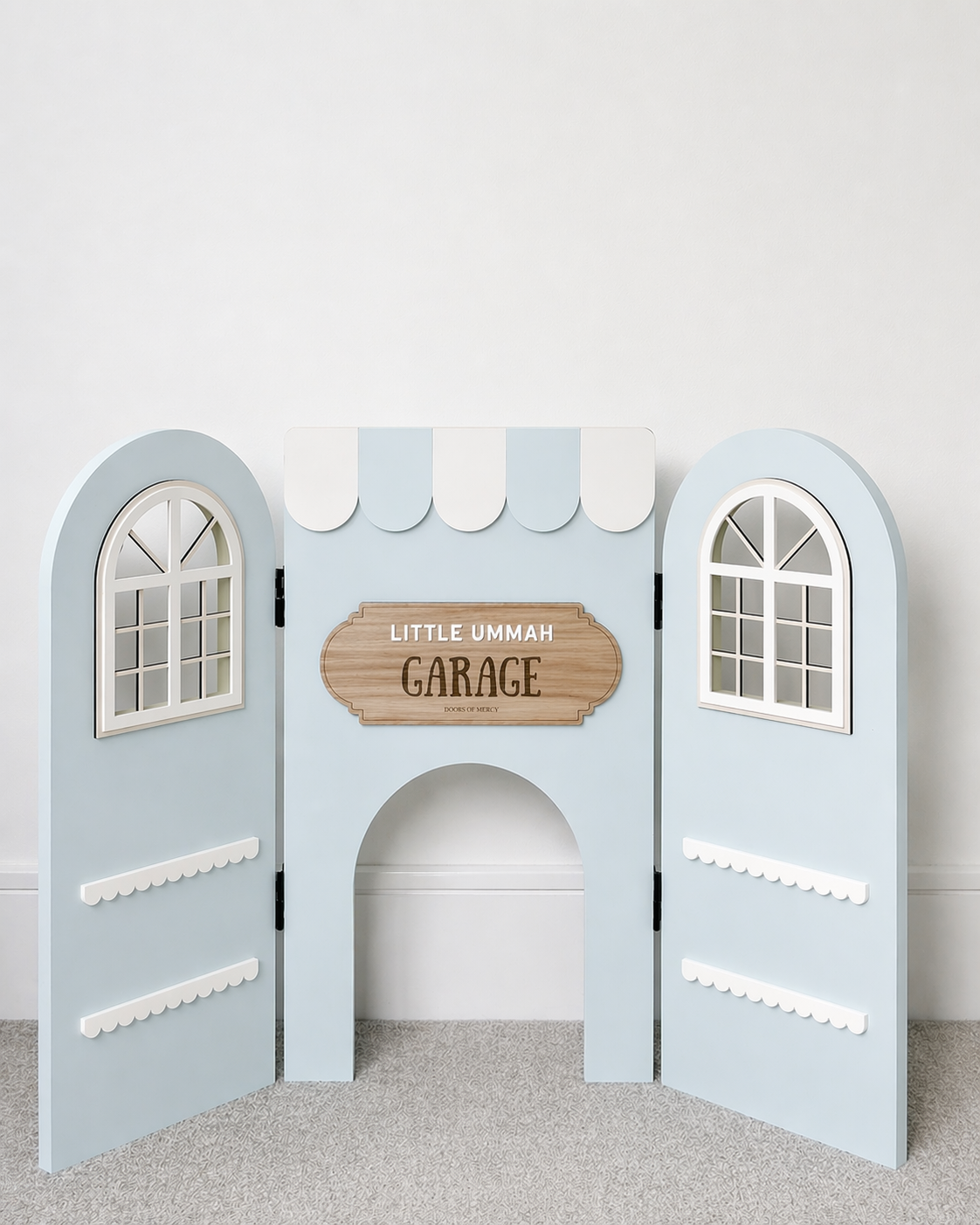 - A signature interchangeable oak-effect sign board, delicately inscribed with “Little Ummah Book Shop” — completing the piece with warmth and character