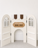 Presented in off white, paired with a brown and white awning offering a soft, timeless aesthetic inspired by classic bookshops and calm, inviting learning spaces.